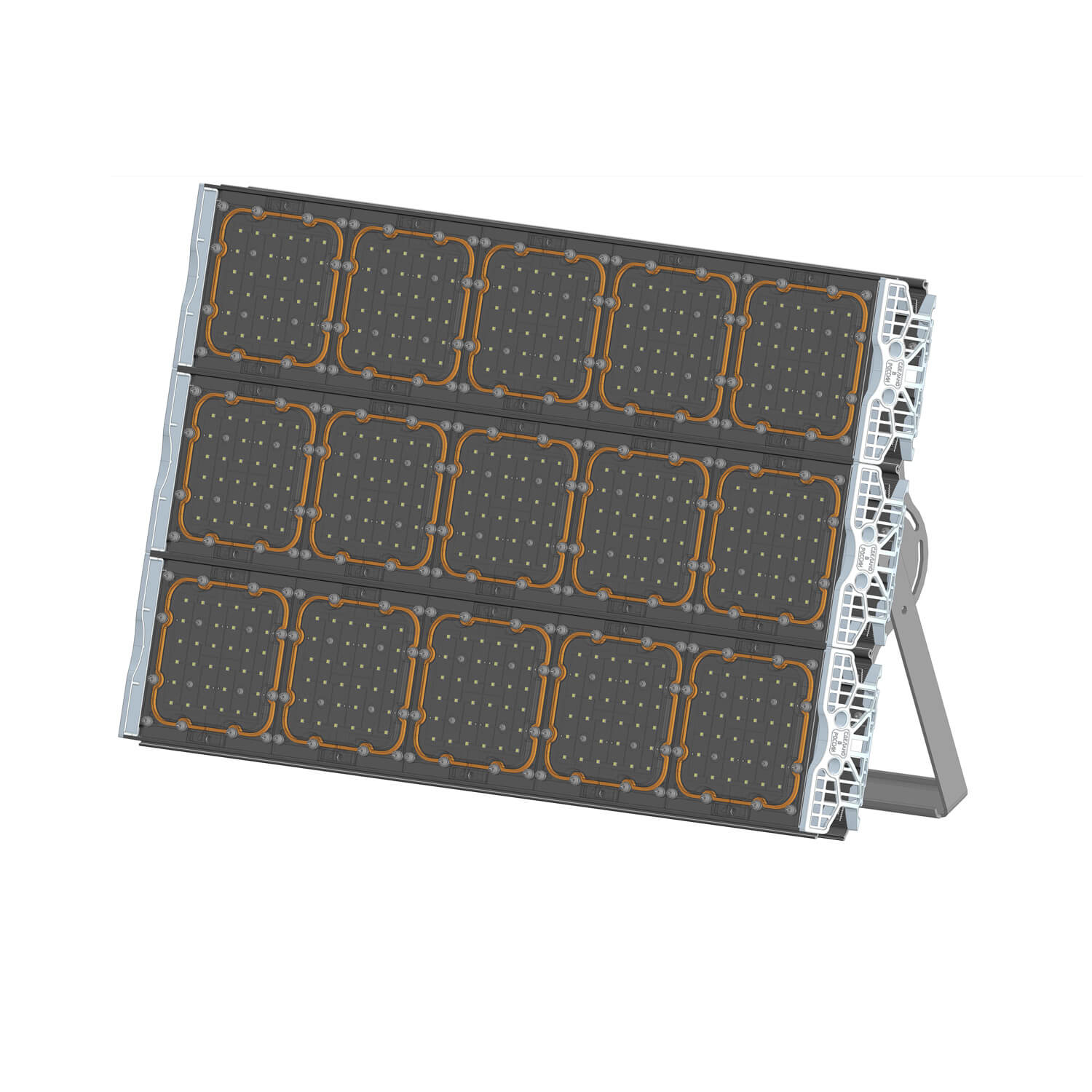 Прожектор светодиодный осветительный, представляющий собой группу светоизлучающих модулей, установленных на осветительной мачте, подключенных к одному выносному модулю питания.